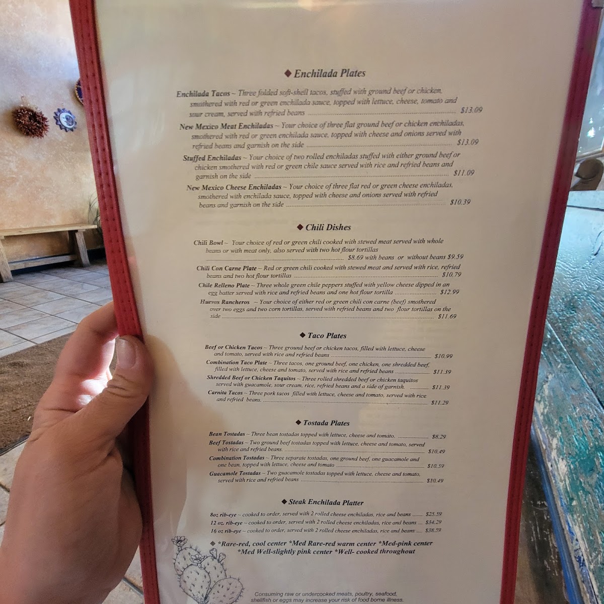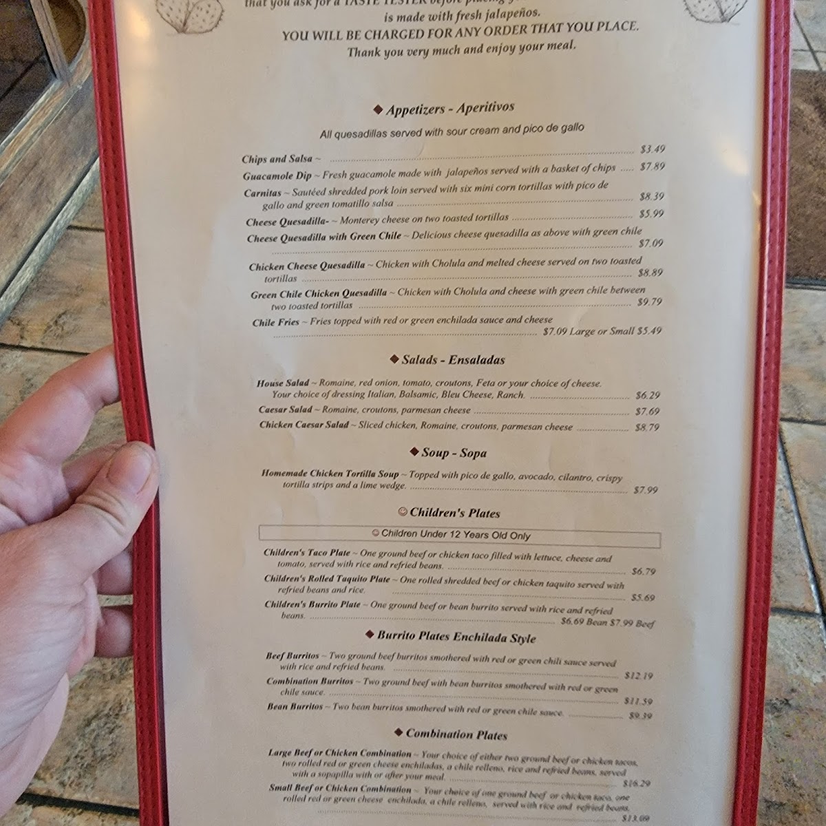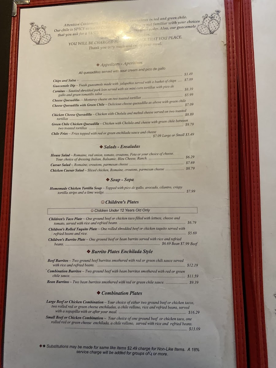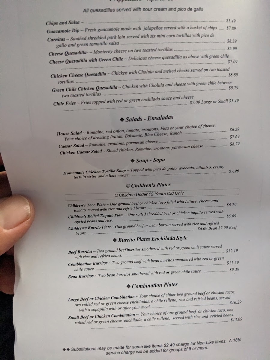 The menu features a range of classic options like combination plates with tacos, enchiladas, and chile rellenos alongside staples such as tortilla soup and spicy quesadillas. Meals are often accompanied by traditional touches like rice, beans, and chips with salsa, creating a well-rounded experience that feels both homey and authentic.