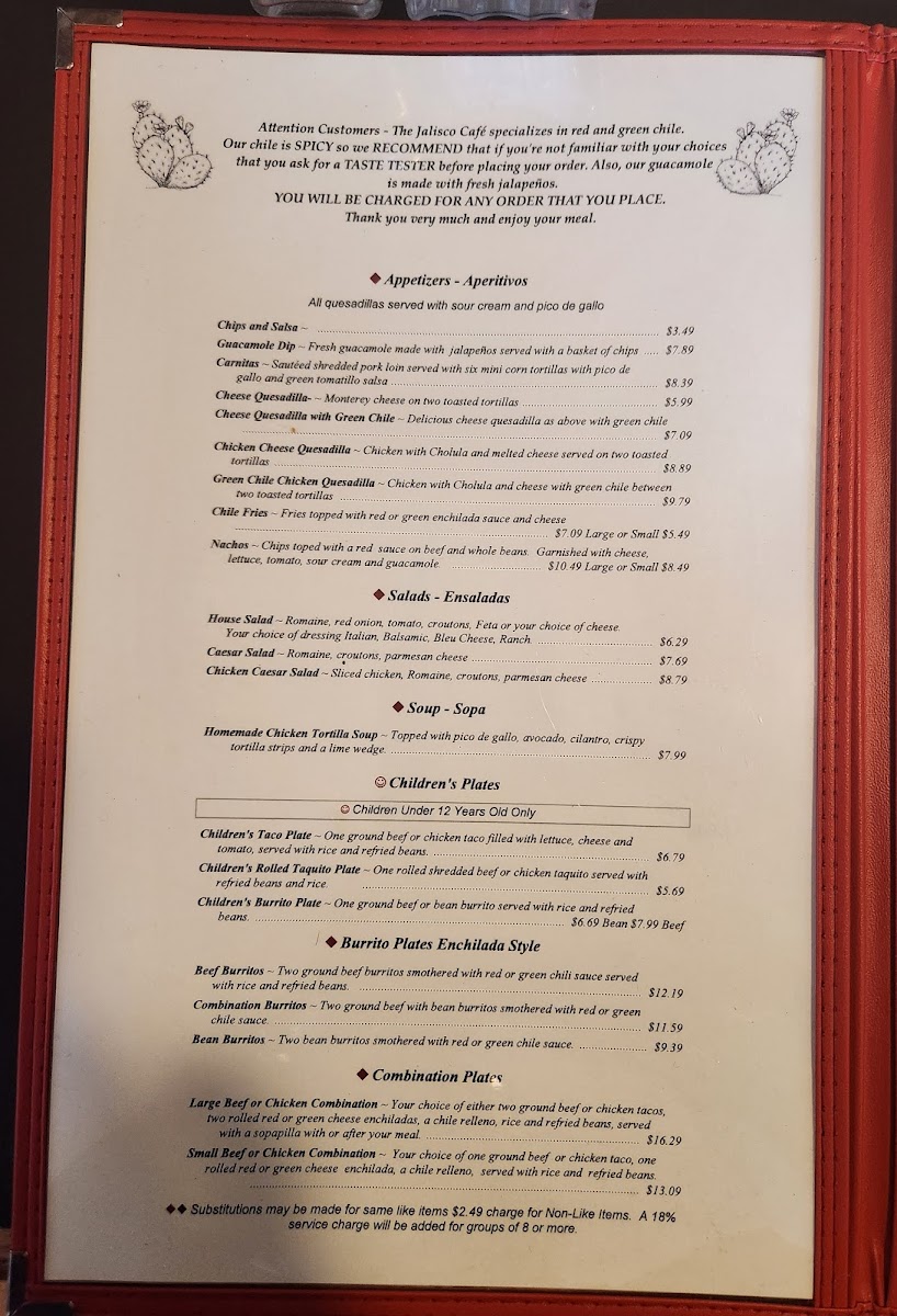 Jalisco Cafe Menu